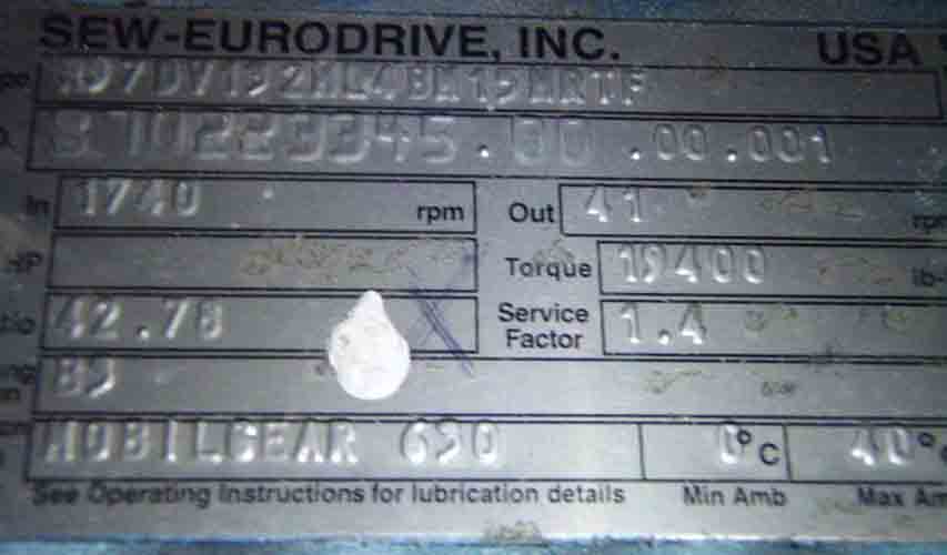 Ratio: | 42.78:1 | Service Factor | 1.4 SF | |||||