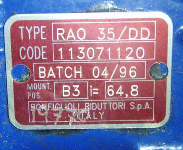 | Manufacturer: | BONFIGLIOLI RIDUTTORI | Our ID No. | 006096 | ||