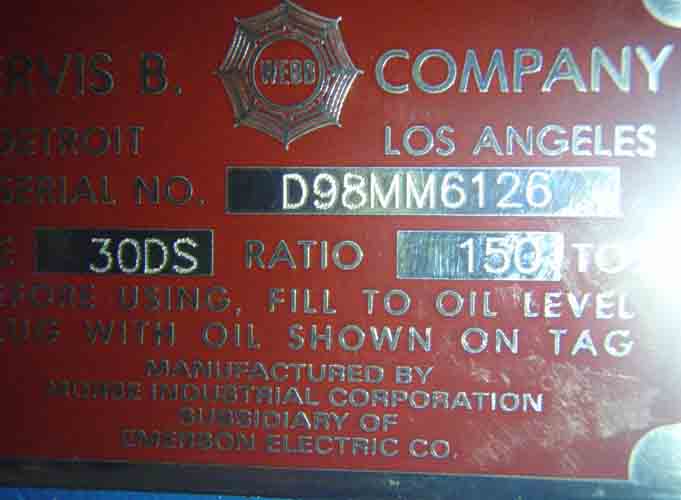 | Manufacturer: | MORSE Jervis B. Webb | Our ID No. | 006309 | ||