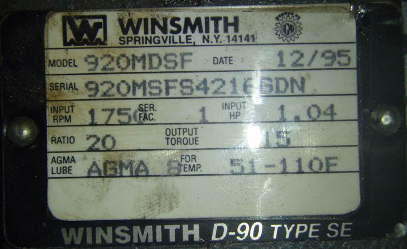 | Manufacturer: | WINSMITH WORM GEAR REDUCER | Our ID No. | 006331 | ||