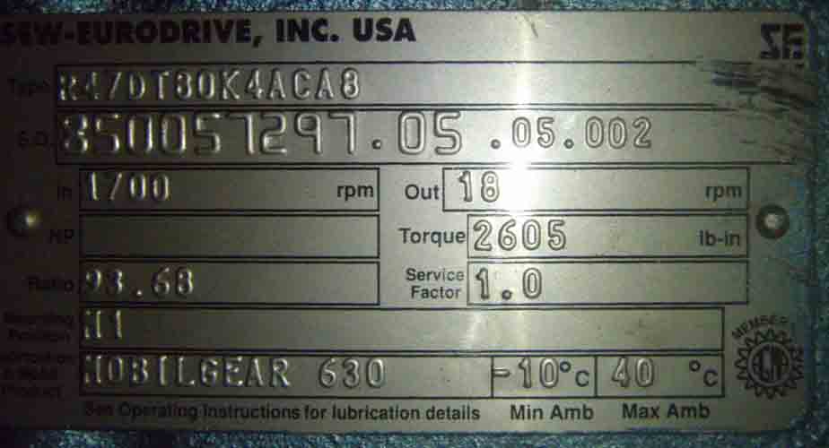 Ratio: | 93.68 | Service Factor | 1 | |||||