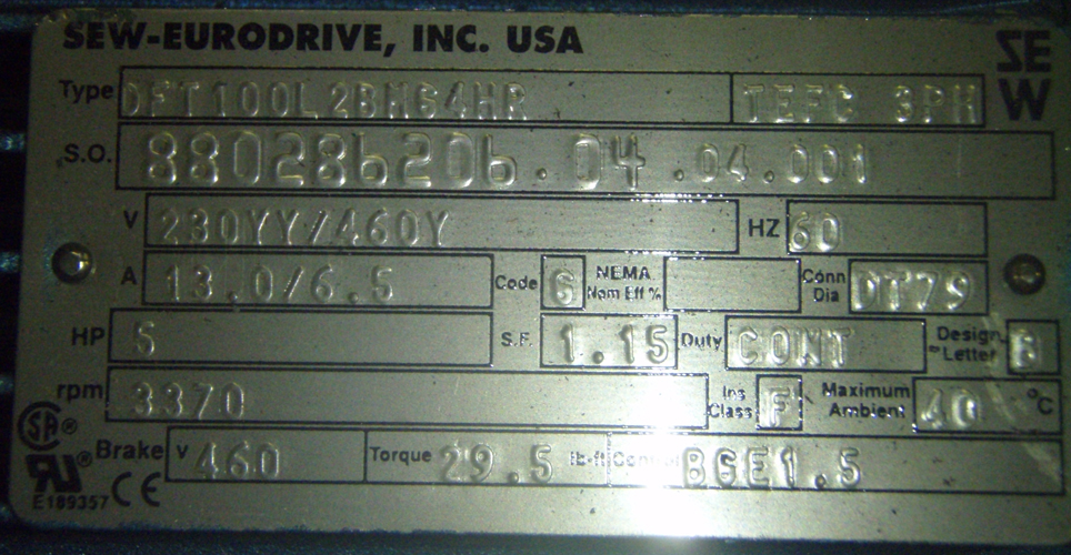 | TYPE: | DFT100L2BMG4HR | Enclosure: | TEFC | |||||