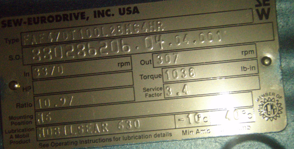 | Ratio: | 10.97 | Service Factor | 3.4 | |||||