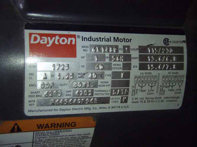 | HP | 1 | RPM | 1725 | Frame | 56H | Enclosure | ODP | |