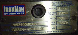 | Manufacturer: | OHIO GEAR IRONMAN | Our ID No. | 006583 | ||