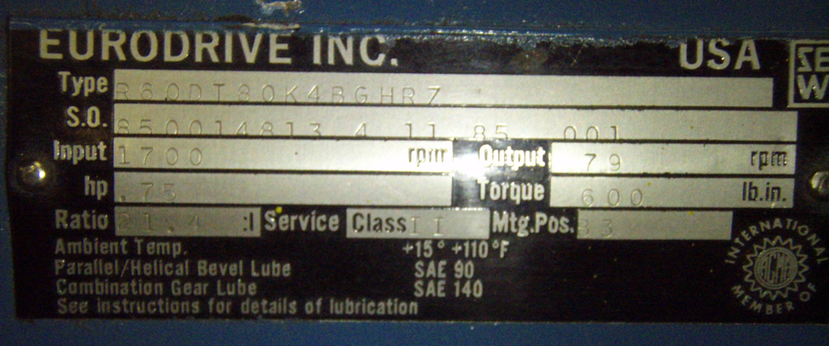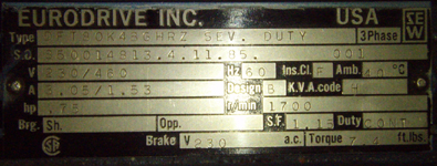 HP | 0.75 | Torque | 600 lb-in | |||||