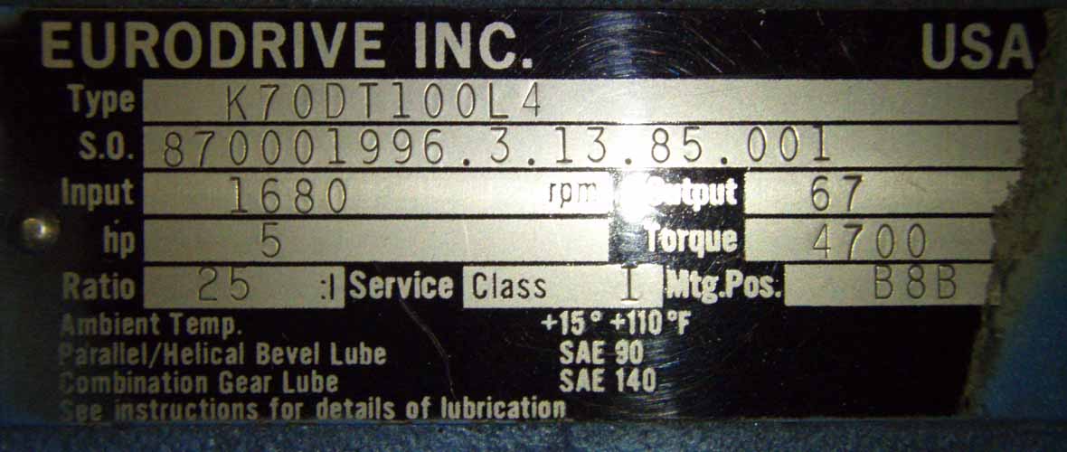 | TYPE: | K70DT100L4 | Our ID No. | 006647 | |||||