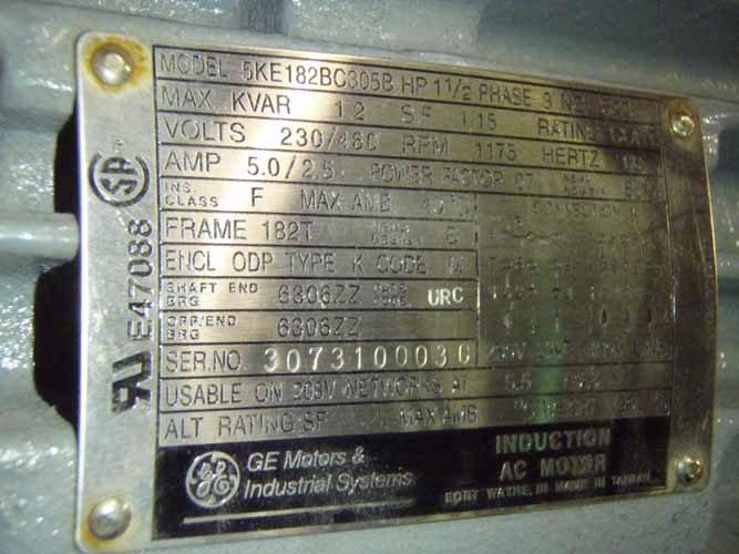 | Volts | 230 / 460 | Amps | 5.0 / 2.5 | Cycles | 60 | Phase | 3 | |