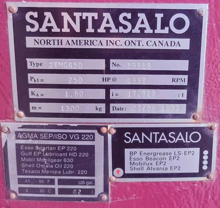 Klistoff Equipment & Machinery, Inc. - Speed Reducer Data Sheet - David Brown Santasalo Yankee Cylinder Dryer Drive |